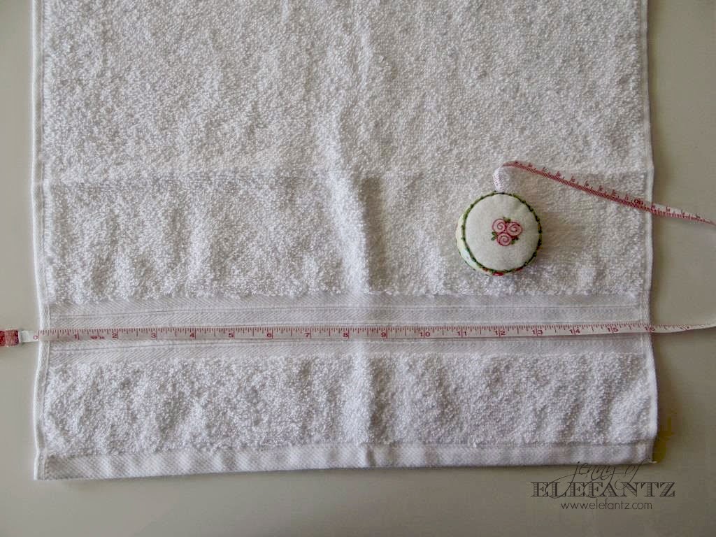 When you have your supplies you will need to measure the width of the hand towel. Mine was 16" wide...