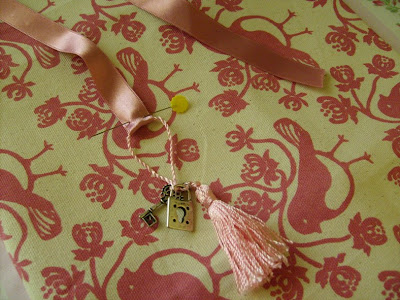 I wanted to add something special to my diary cover so I took a long piece of satin ribbon, a tassle, a key, and a padlock...